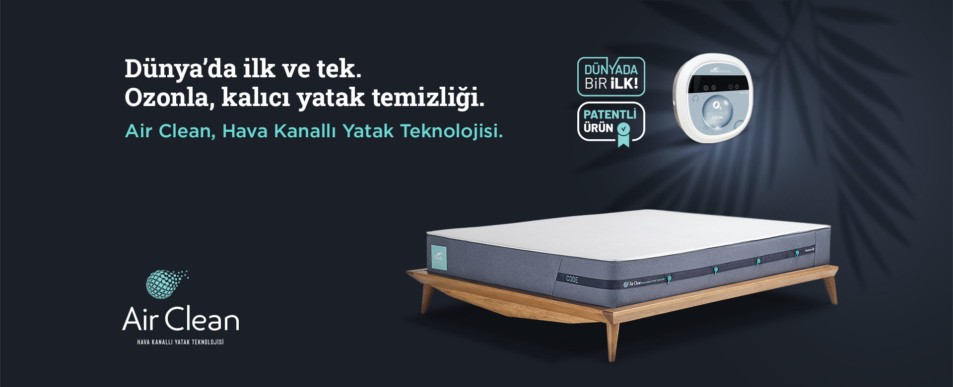 Patentli Air Clean yatak içi temizleme sistemimiz, yatakların içerisindeki zararlı bakterileri ozonla temizleyerek 12-15 yıl boyunca ilk günkü hijyeninde kalmasını sağlar. Yatağın yanında gelen Air Cleaner temizleme jeneratörü ve hava kanalları sayesinde, yatağın içi derinlemesine dezenfekte edilir.
